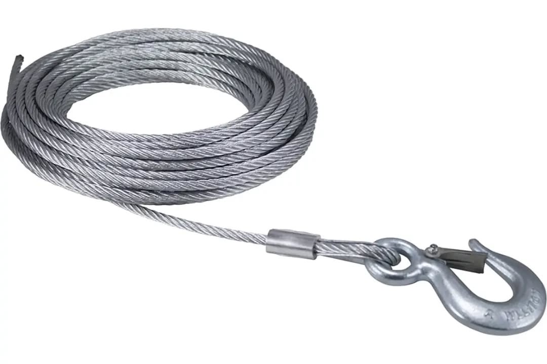 Трос стальной 6мм с крюком, длинна 99м.